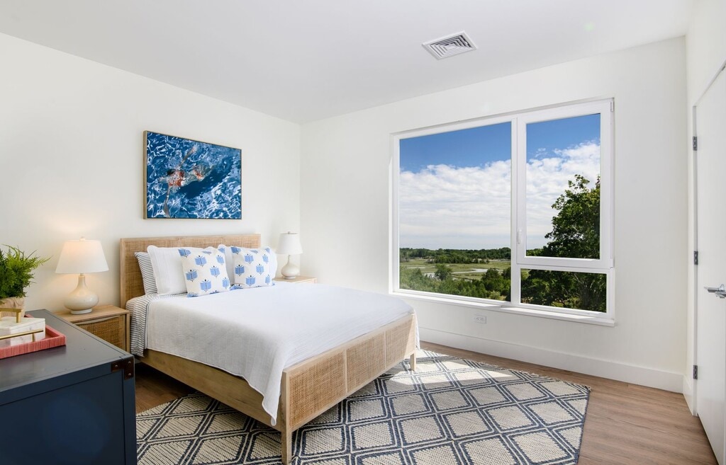 Beautiful, bright and spacious 2 bedroom, 2 bathroom located in a brand new construction building featuring high-end finishes throughout, in unit laundry, central air, 9 foot ceilings, enormous 6.5' by 10' windows, gorgeous views of the marsh, open floor plan with a spacious living room, fully applianced kitchen with island, quartz counter tops, stainless steel appliances and shaker-style cabinetry, great size bedrooms, resilient style wood flooring, ultra modern tiled bathrooms, private balcony and a multitude of other refined finishes as well as 1 parking space included in the rent. The Community features a meticulously appointed great room including a chef’s kitchen, fireplace, flat screen tv, sofas, coffee booths, and swivel chairs overlooking the outdoor patio which can be enjoyed any season. During the warmer months, an oversized outdoor stone patio featuring an arbor, firepits and grills, Adirondack chairs, umbrella topped tables, and outdoor sectionals provide an amazing space to gather and enjoy the outdoors with friends. The Sanctuary, while privately nestled in its own environment, is convenient to South Shore beaches, restaurants, golf courses, marinas and the MBTA Commuter Rail station.