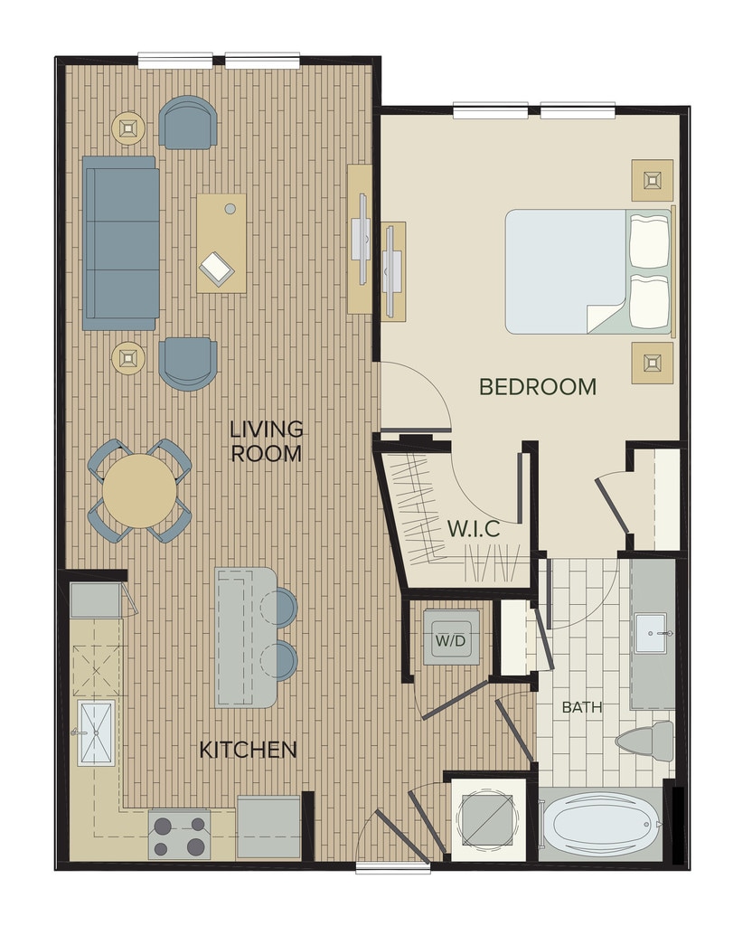 1 Bed, 1 Bath, 743 sq ftAvailable NowModel Gallery