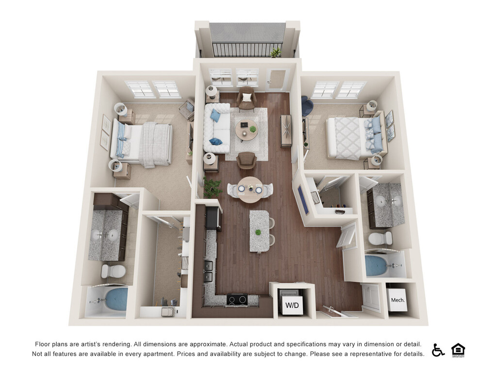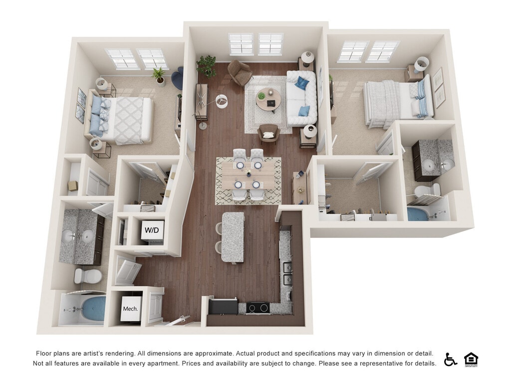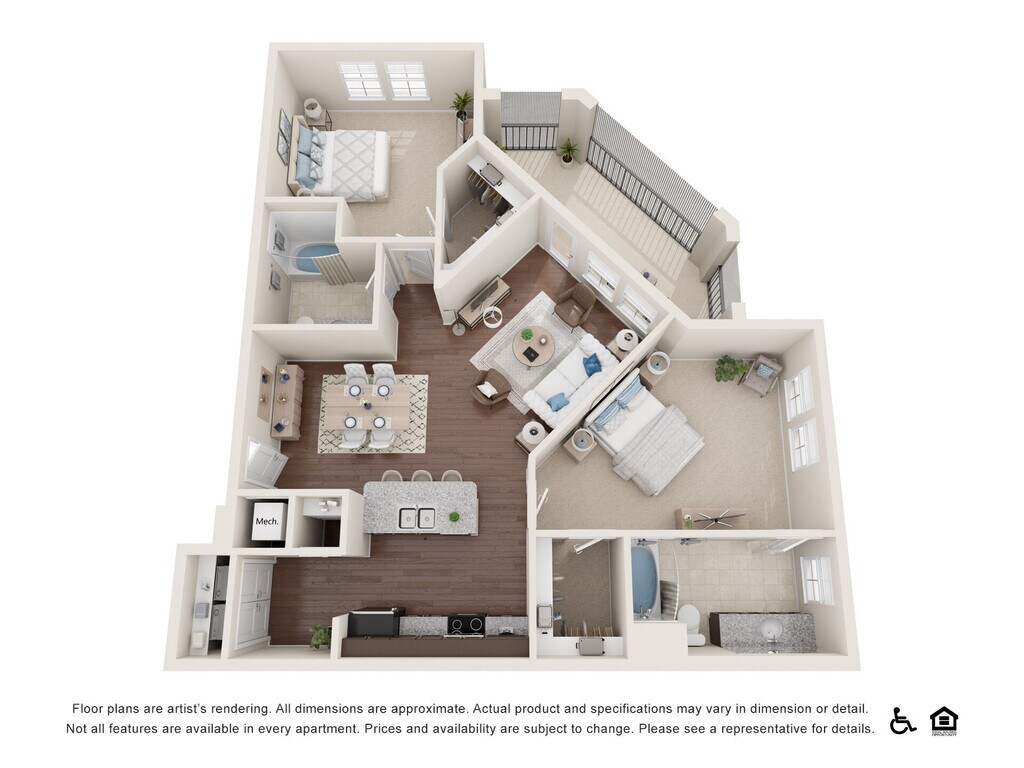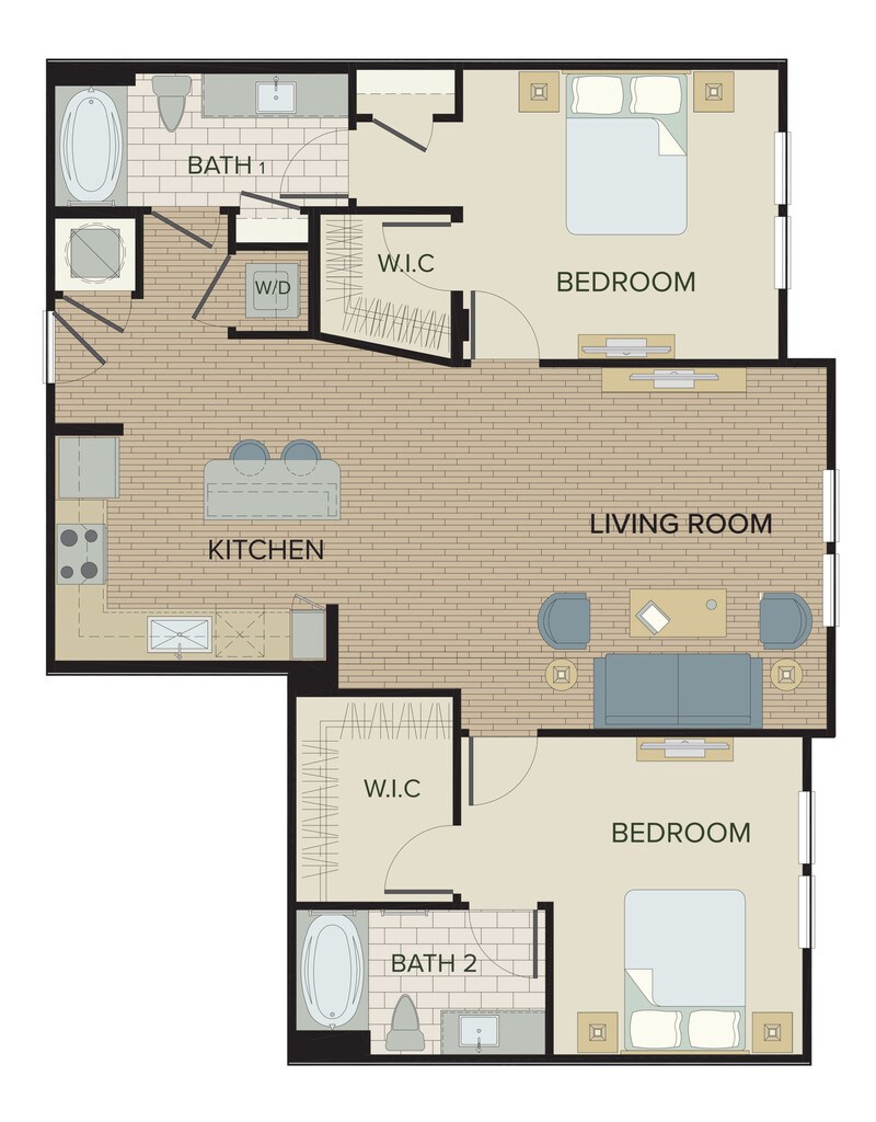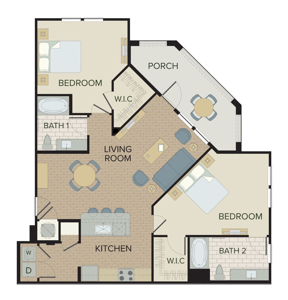 2 Beds, 2 Baths, 1202 sq ftAvailable NowLargest 2 BedroomThis is the largest 2 Bedroom at this PropertyModel Gallery
