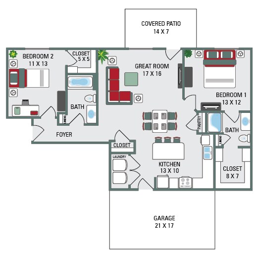 1 Bed - 1075 sq ft - Floorplan 1 Call for Availability