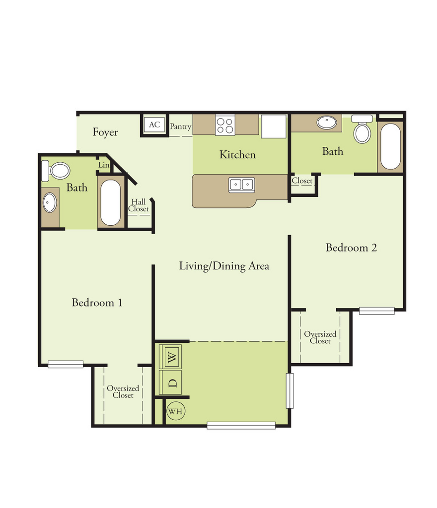 Two Bedroom Two Bath 60 - Floorplan 1 Two Bedroom Two Bath 28