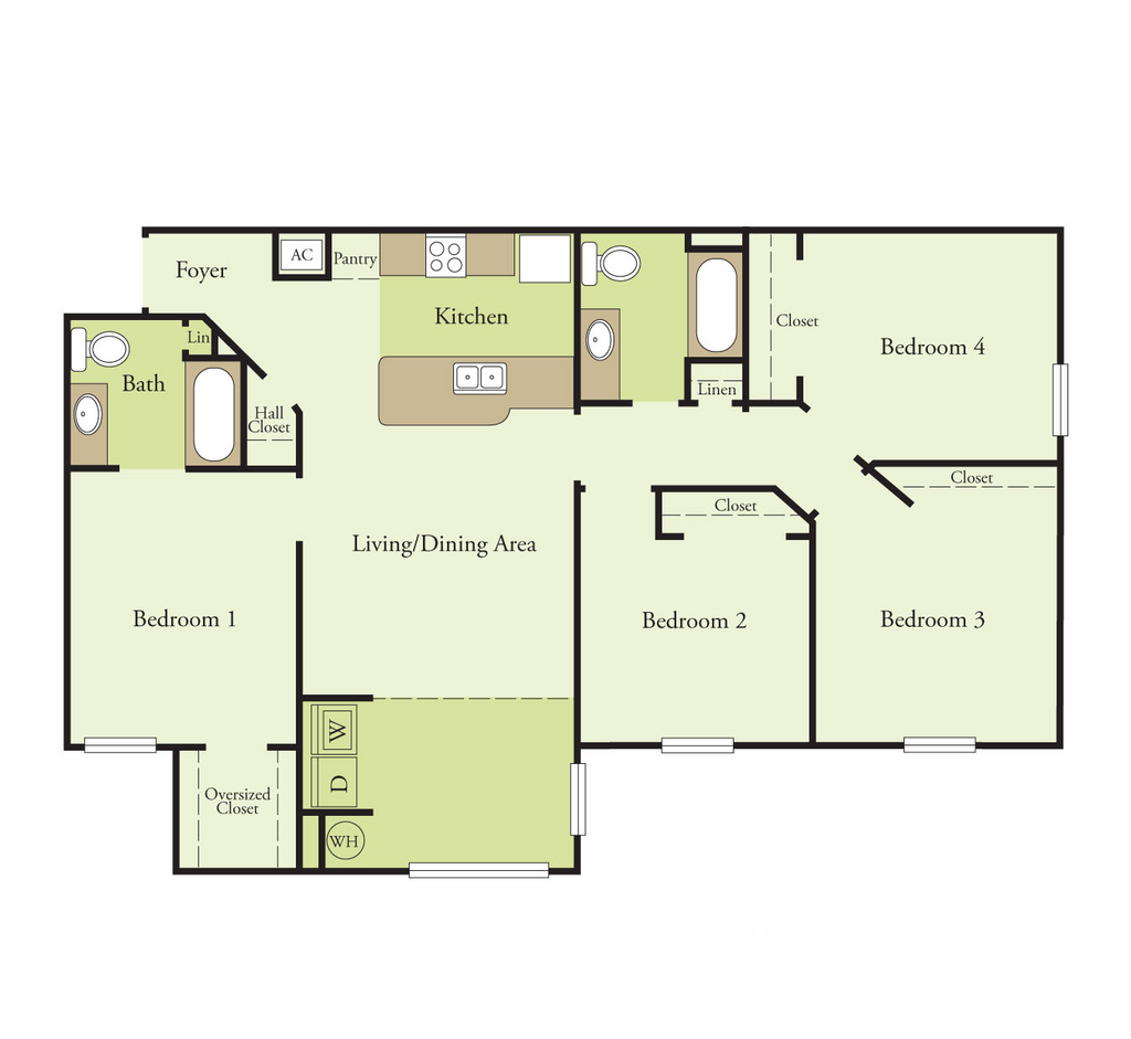 Show Unavailable FloorplansFour Bedroom Two Bath 60