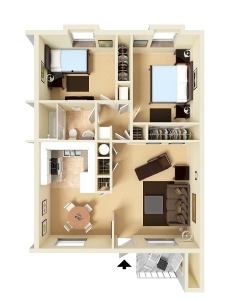 Apartment Model: Two Bedroom Large$1,0302 Bedroom, 2 Bath, 919 sq ftAvailable December 19, 2025![]()