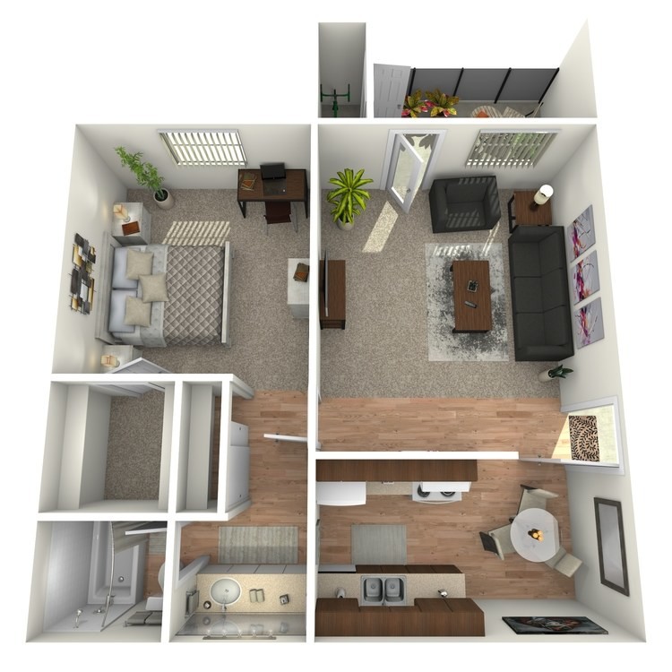 1 Bed, 1 Bath, 604 sq ftModel Gallery