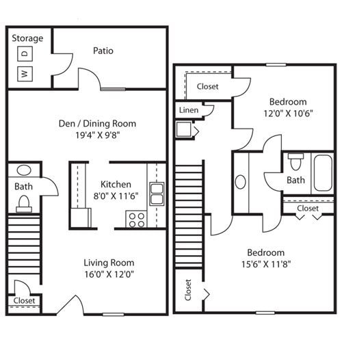 Apartment Model: 2 Bedroom 1.5 BathFrom $1,0402 Bedroom, 1.5 Bath, 1100-1200 sq ftAvailable NowFloorplansPhotos![]()