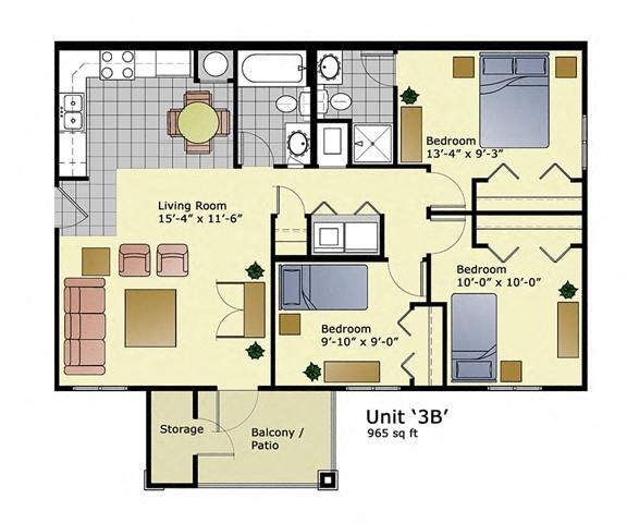 Apartment Model: Unit 3BCall For Rates3 Bedroom, 2 Bath, 965 sq ftUnavailable![]()