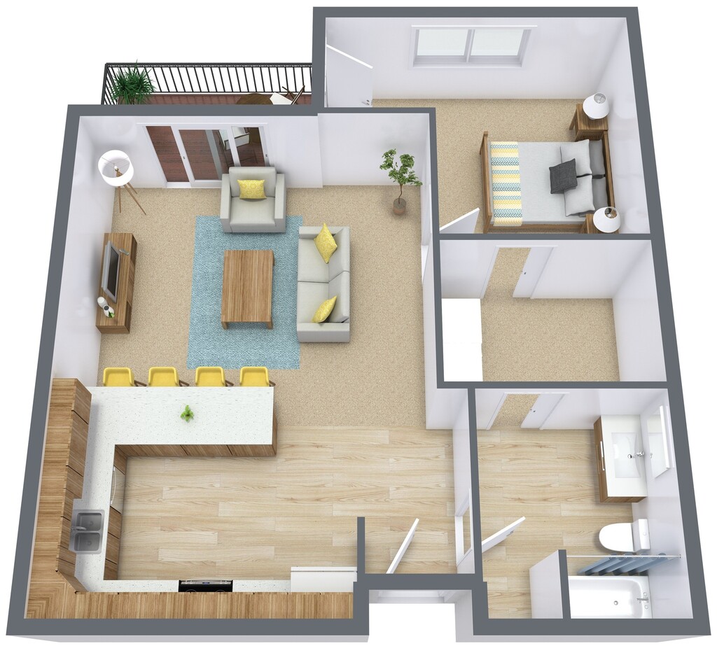 1 Bed, 1 Bath, 747 sq ftModel Gallery