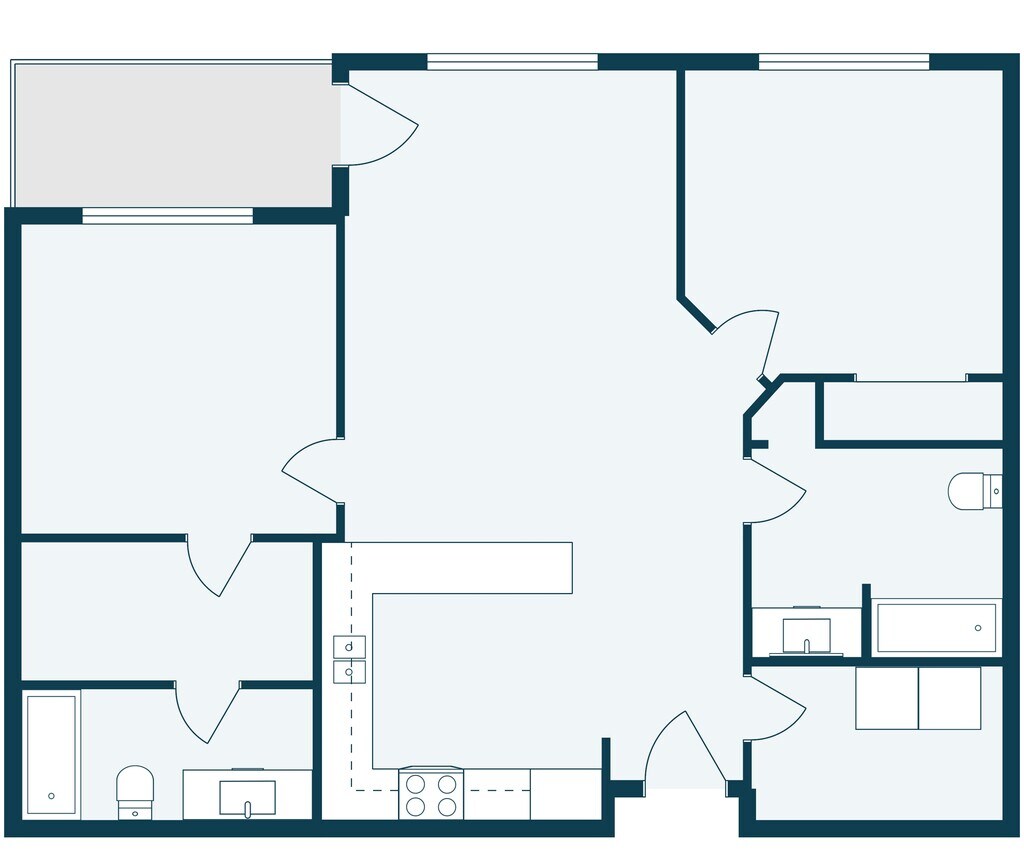 Sandy Creek - One Bedroom - Plan 11C - Floorplan 2 2 Bedrooms