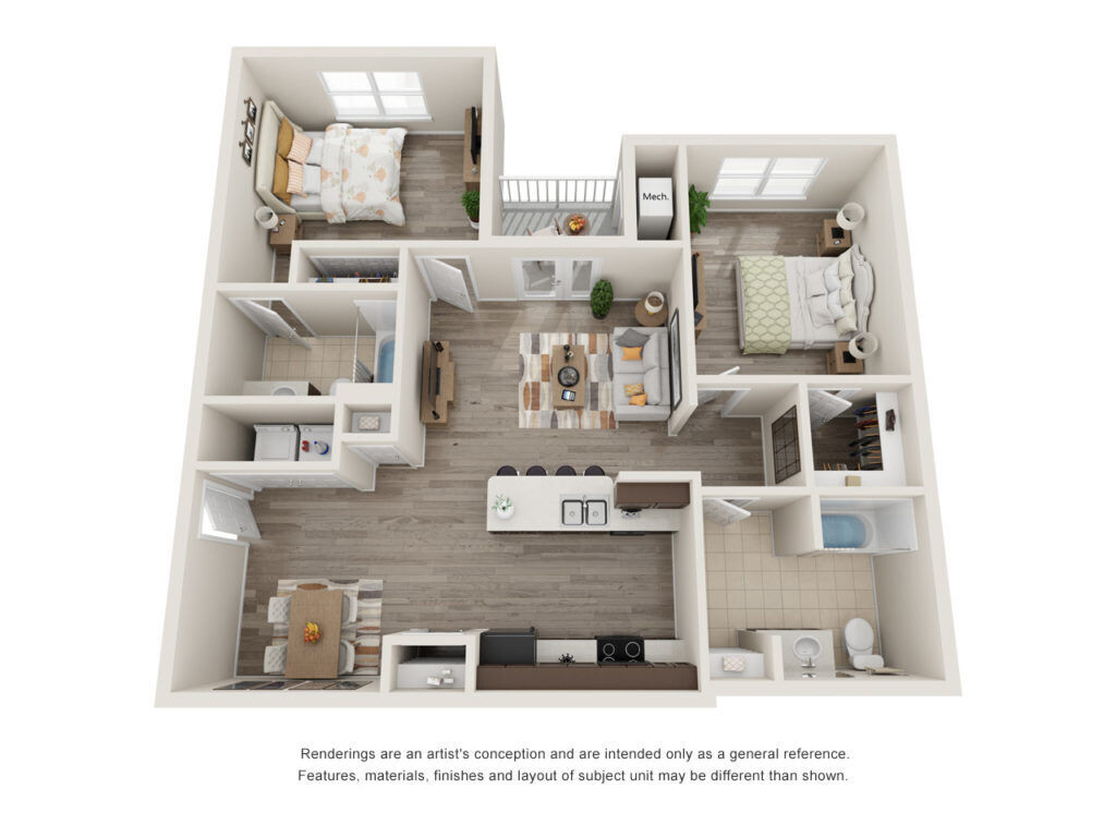 2 Beds, 2 Baths, 965 sq ftAvailable NowModel Gallery