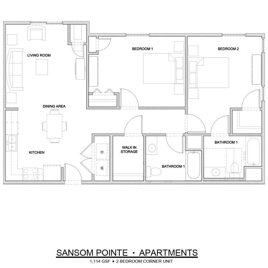 1 Bedroom to 2 Bedroom Apartments at Sansom Pointe Senior currently range from $1,115 to $1,332