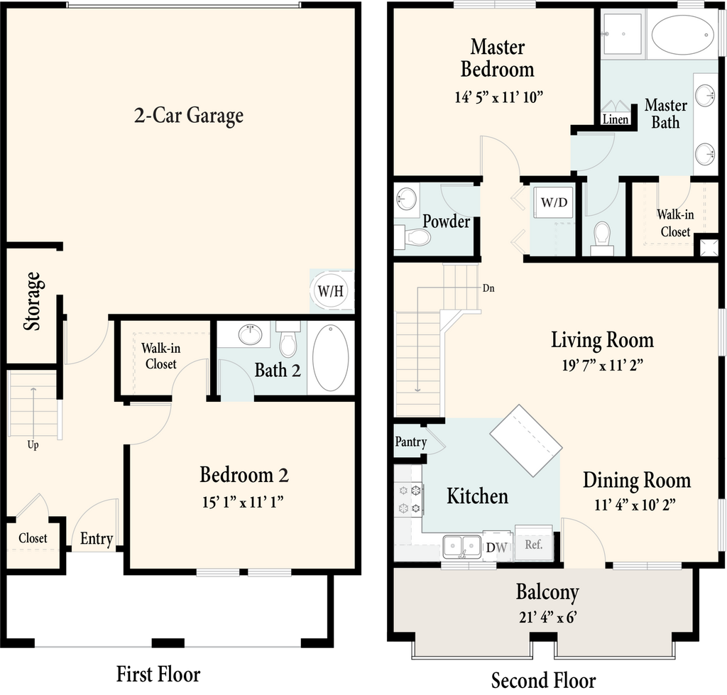 Townhomes - Plan 1 - Floorplan 1 2 Bedrooms