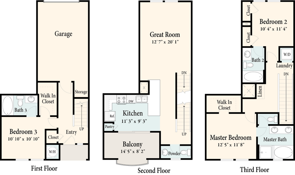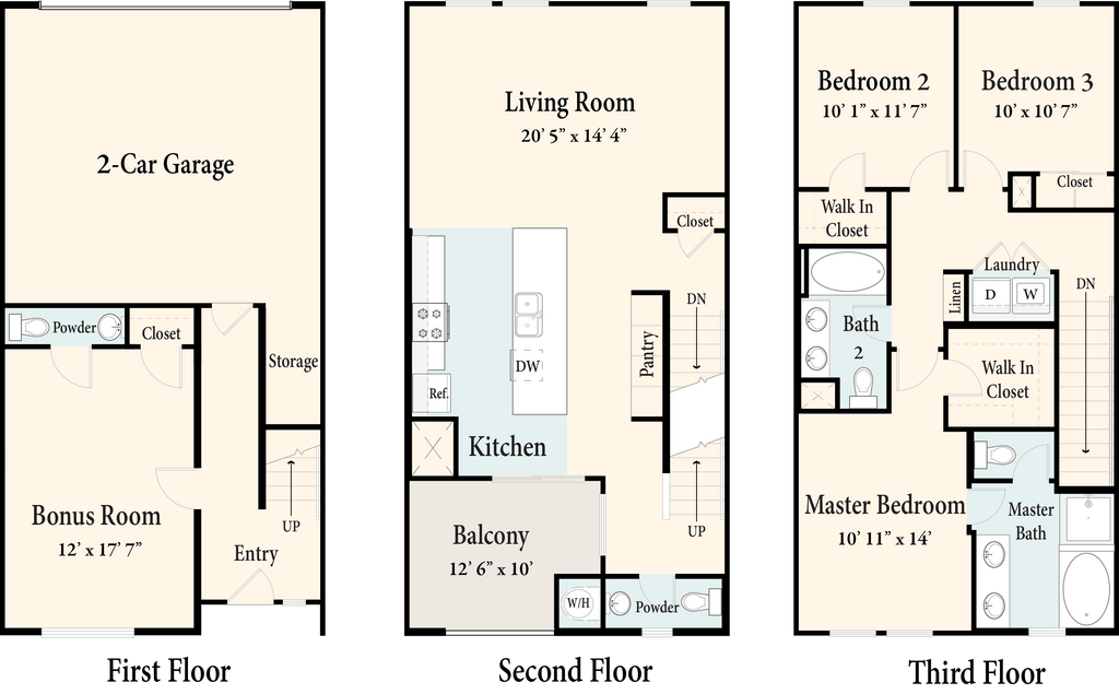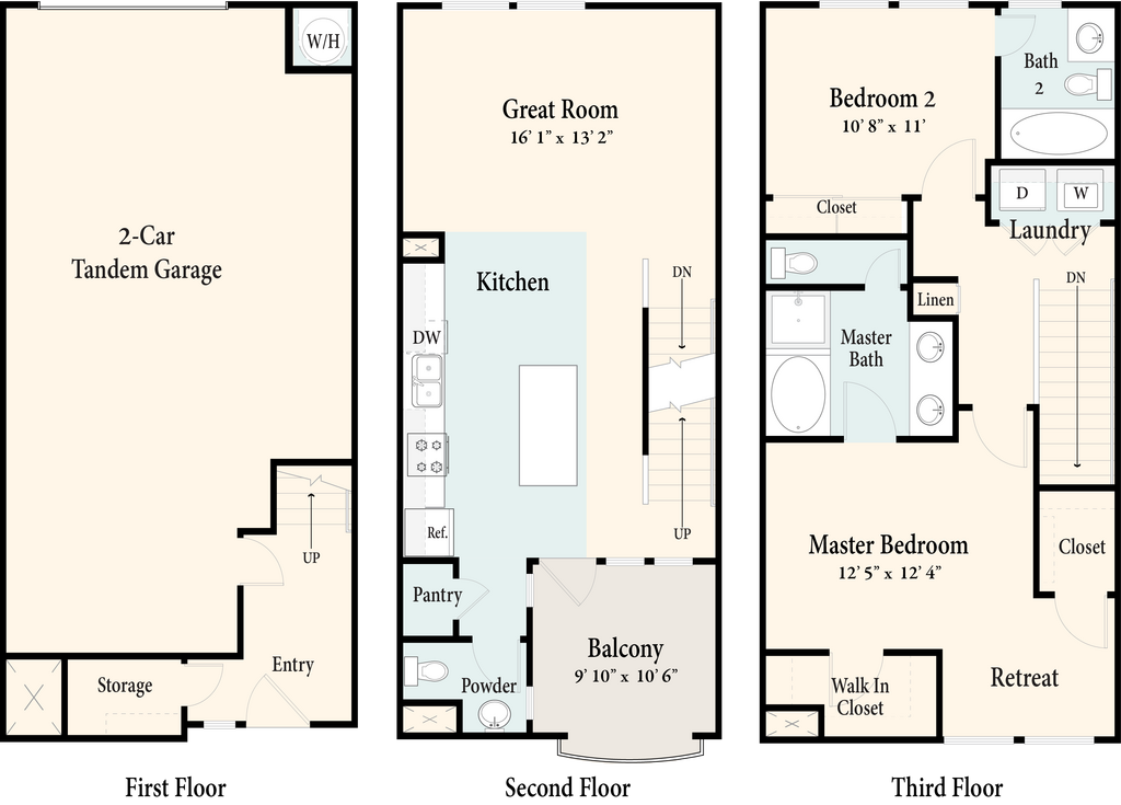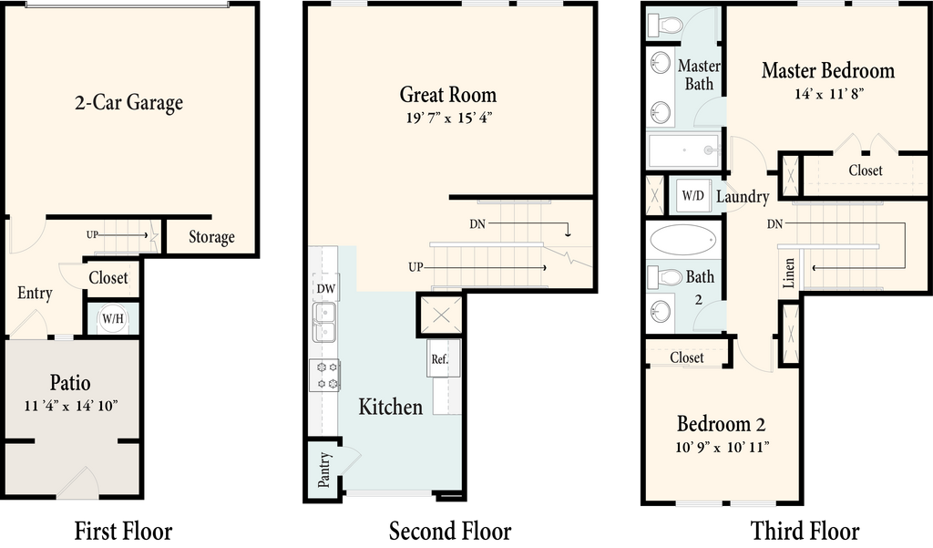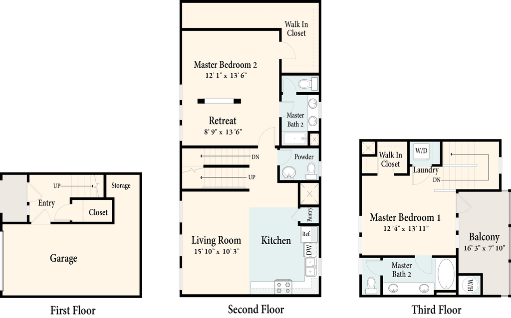 2 Beds, 2.5 Baths, 1539 sq ftModel Gallery