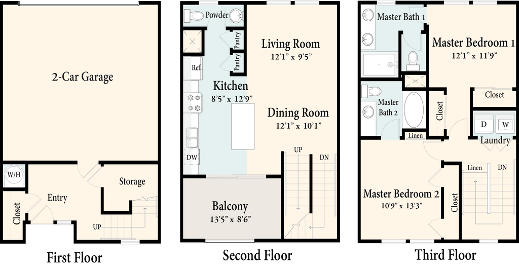 2 Beds, 2.5 Baths, 1535 sq ftAvailable NowModel Gallery