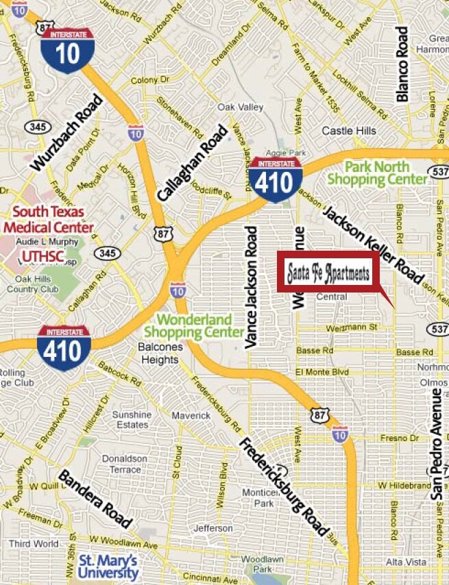 Santa Fe Apartments is located in the Dellview Neighborhood and 78216 Zip code of San Antonio, TX.