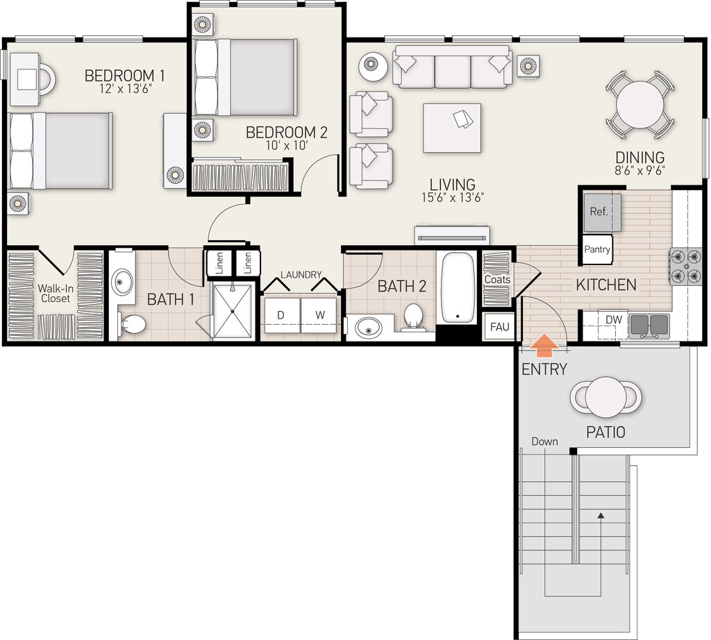 2 Beds, 2 Baths, 1043 sq ftModel Gallery