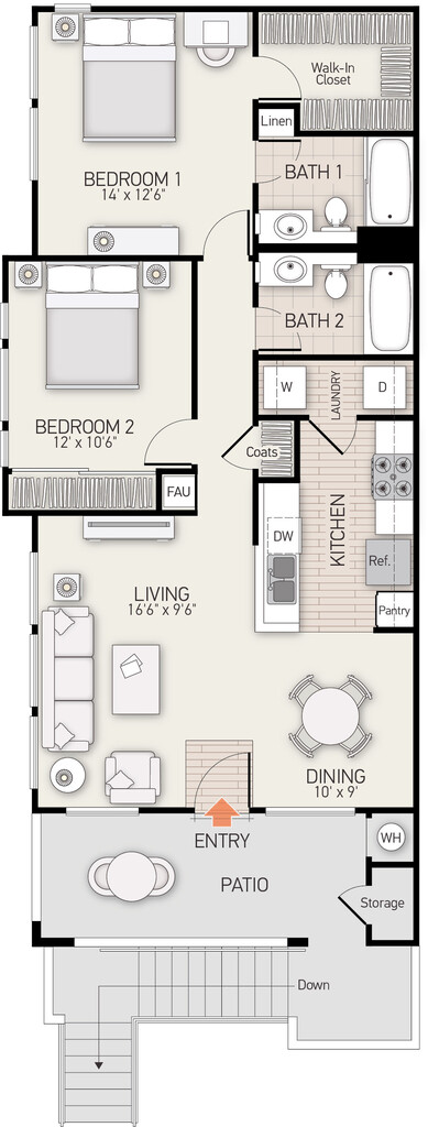 2 Beds, 2 Baths, 1148 sq ftLargest 2 BedroomThis is the largest 2 Bedroom at this PropertyModel Gallery