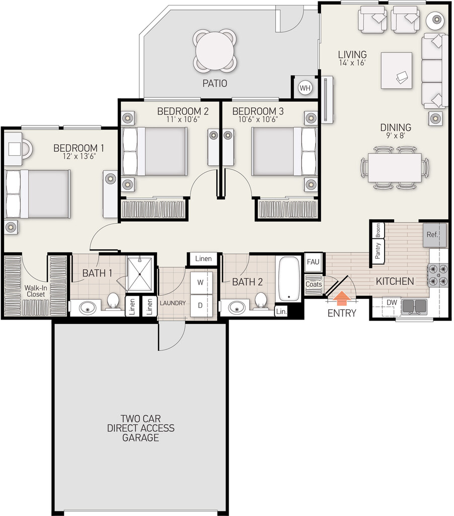 3 Beds, 2 Baths, 1316 sq ftAvailable Nov 8Model Gallery