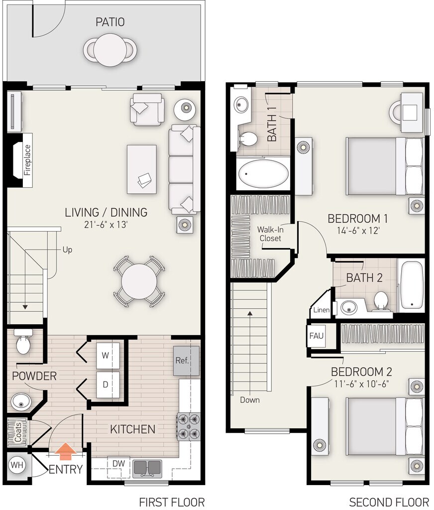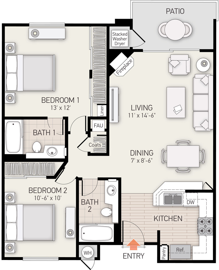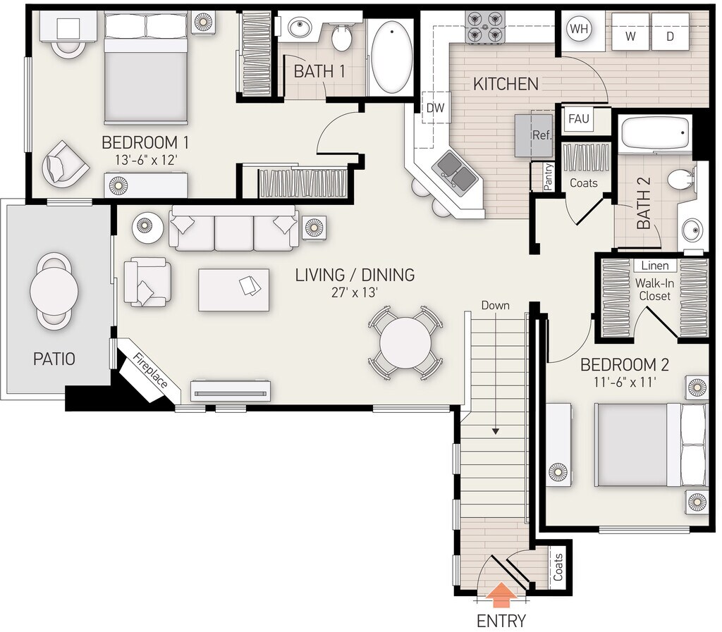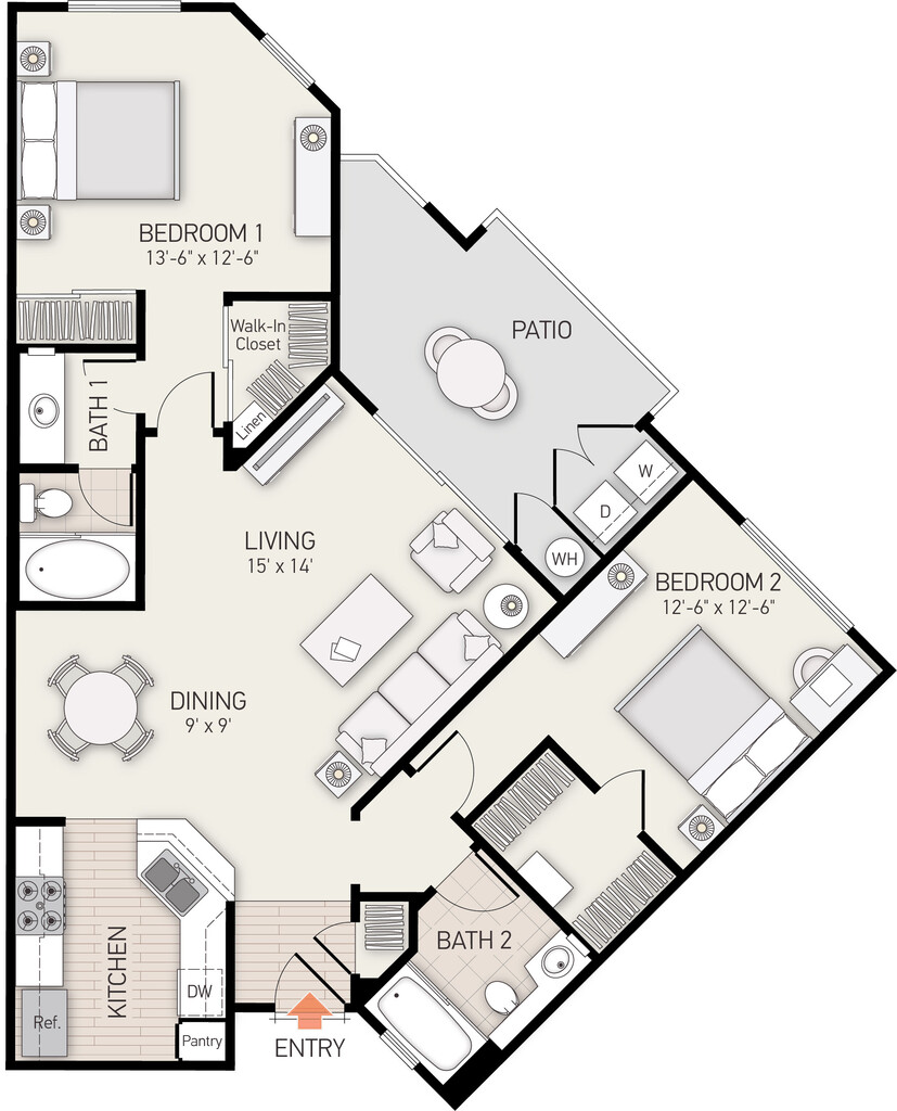 2 Beds, 2 Baths, 1231 sq ftAvailable NowModel Gallery
