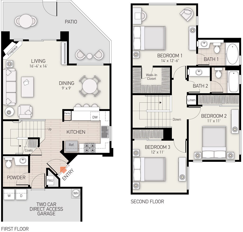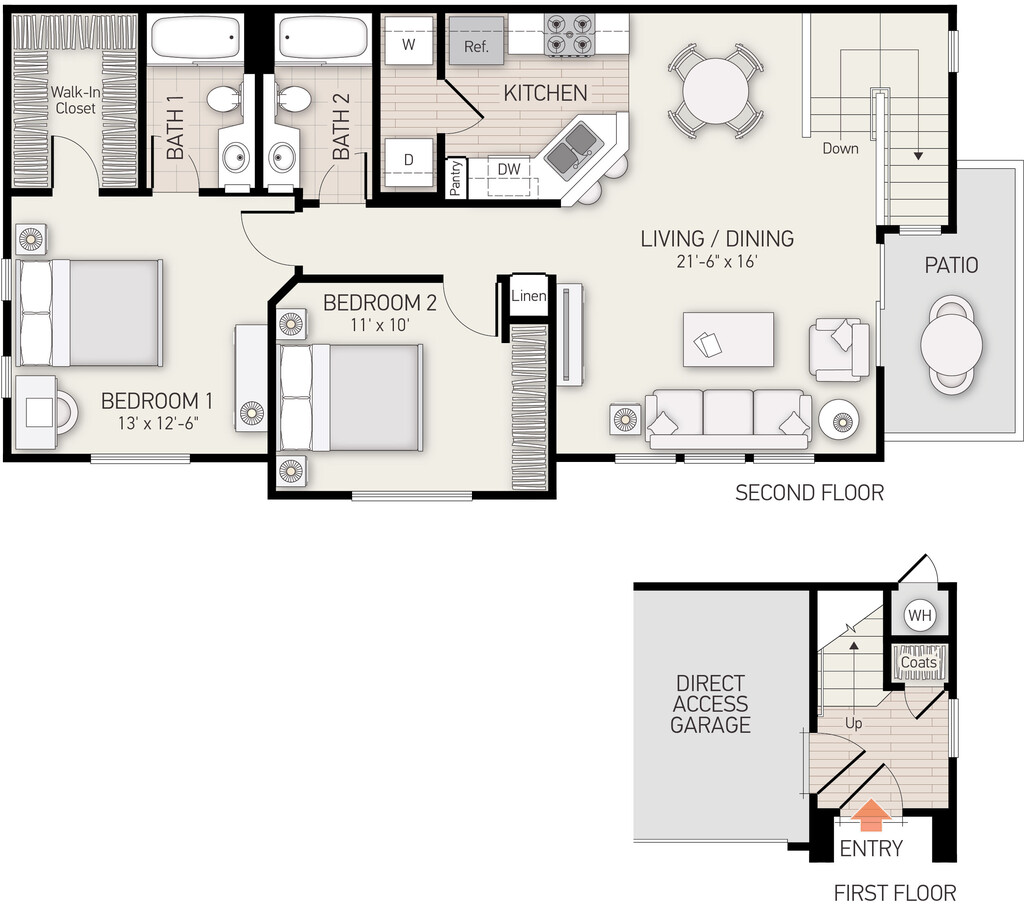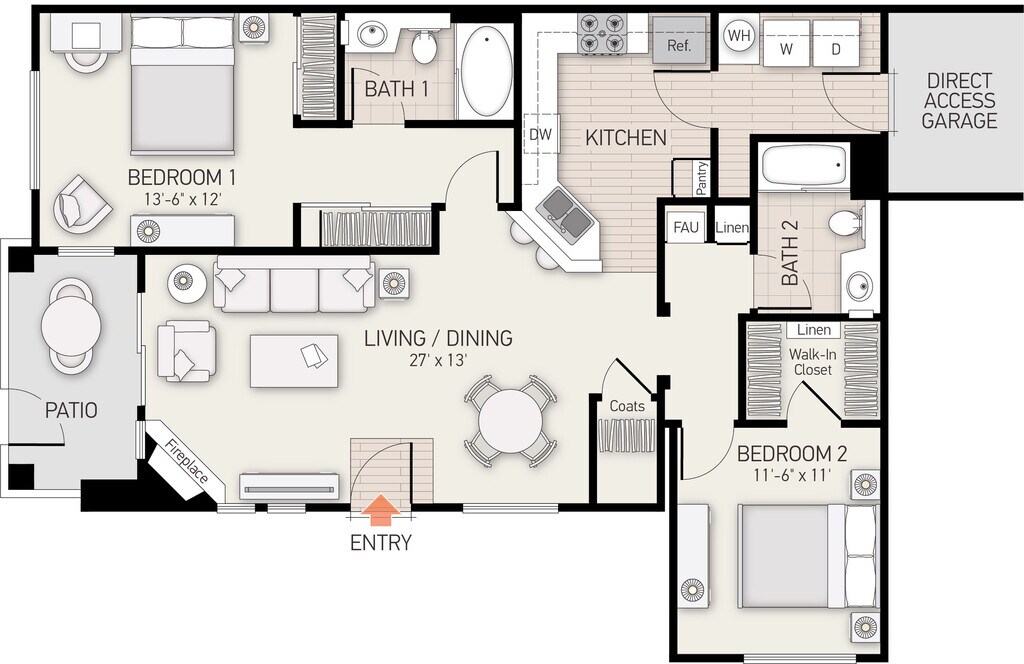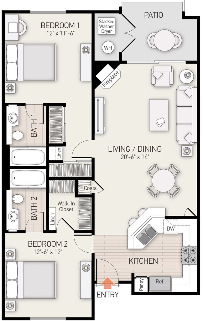 2 Beds, 2 Baths, 1231 sq ftAvailable NowModel Gallery