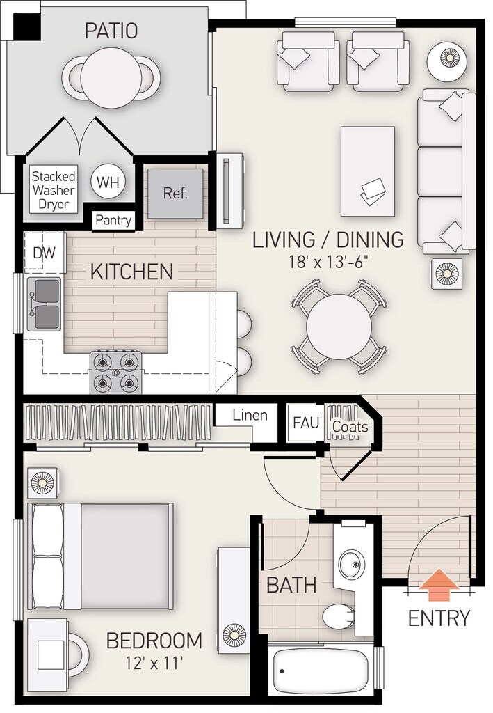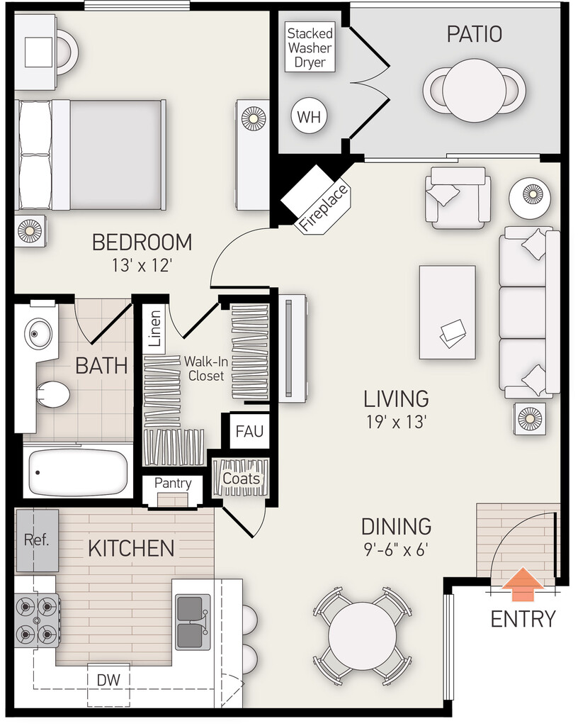 Apartment Model: Plan AFrom $2,7351 Bedroom, 1 Bath, 701 sq ftAvailable Now![]()