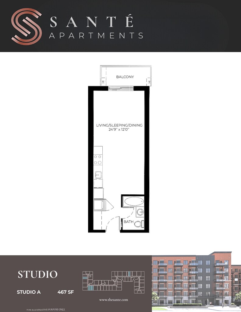 Sante Apartments offers Studio to 2 Bedroom apartments starting from $1,465 and having 450–950 sq ft. Here is the current pricing and availability: