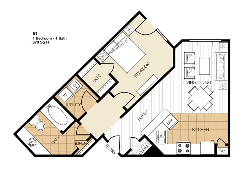 1 Bed, 1 Bath, 670 sq ftAvailable NowAvailability Details