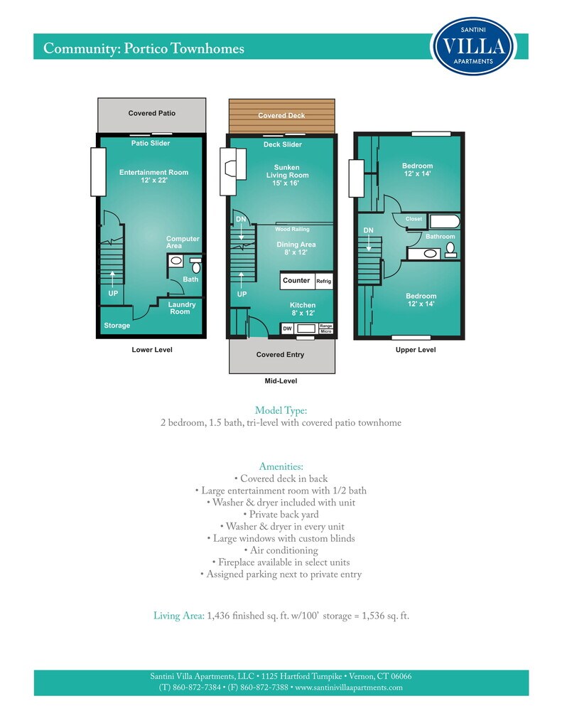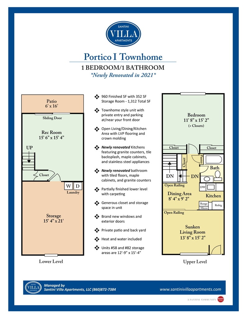 Four distinct communities. Four unique choices. Sunrise Apartments, Stoneledge Apartments, Portico Townhomes, & Woodbrook Townhomes. Situated among rolling hills in centrally-located Vernon, CT, Santini Villa Apartments offer stylish and spacious one and two-bedroom townhomes and one-bedroom apartments – perfect for any lifestyle. Built and maintained by the award-winning Santini family, each apartment and townhome boasts unique features, upgrades, privacy and much more. Residents enjoy carefree, quality living without compromising value – heat and water are always included in the rent. Distinctive designs — quality craftsmanship — comfort and ambiance. These elements work together to create a warm feeling of home for the people who live at the Villa.