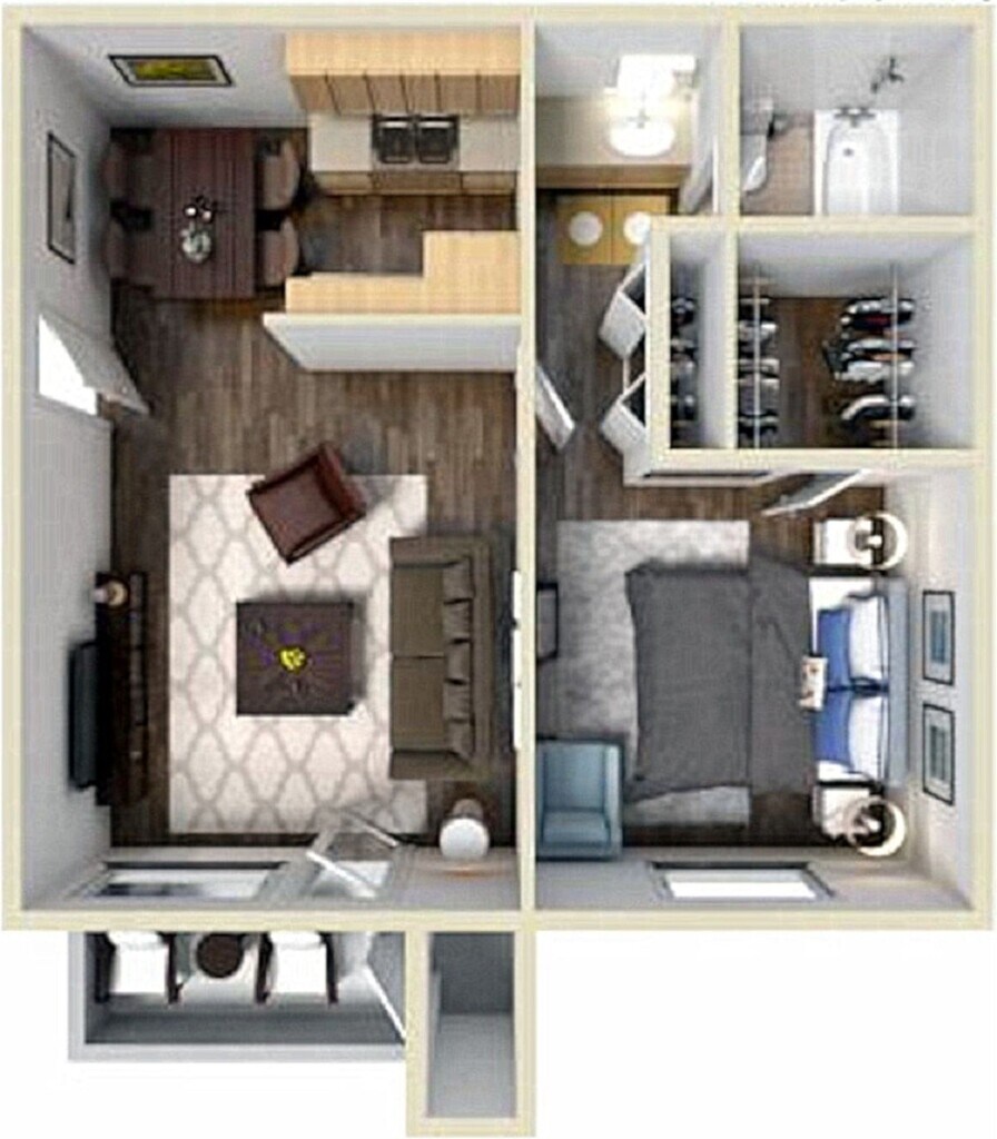 Apartment Model: 1-LG-UPFrom $8991 Bedroom, 1 Bath, 604 sq ftAvailable NowFloorplansPhotos![]()
