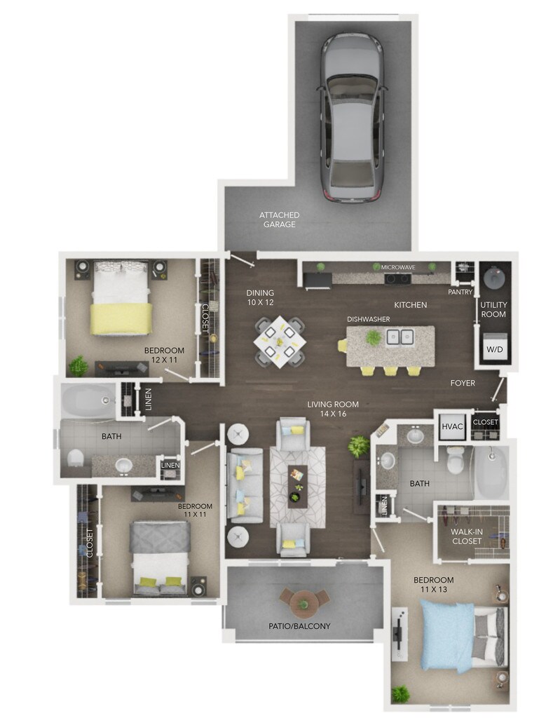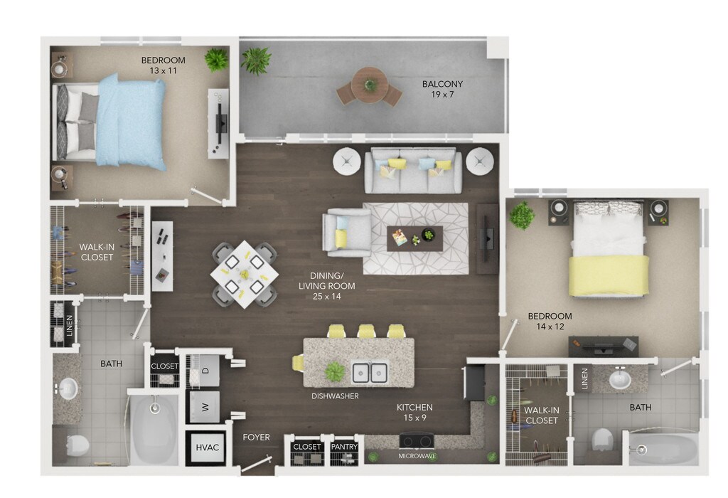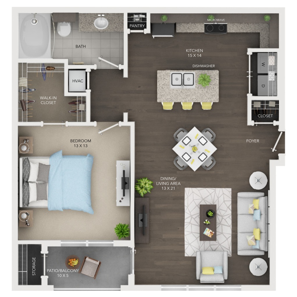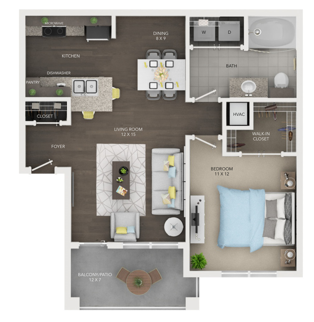 1 Bed, 1 Bath, 856 sq ftAvailable NowLargest 1 BedroomThis is the largest 1 Bedroom at this PropertyModel Gallery