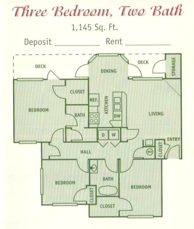 Apartment Model: 3BR/2BA3 Bedroom, 2 Bath, 1145 sq ftUnavailable3BR/2BA - Floorplan 1