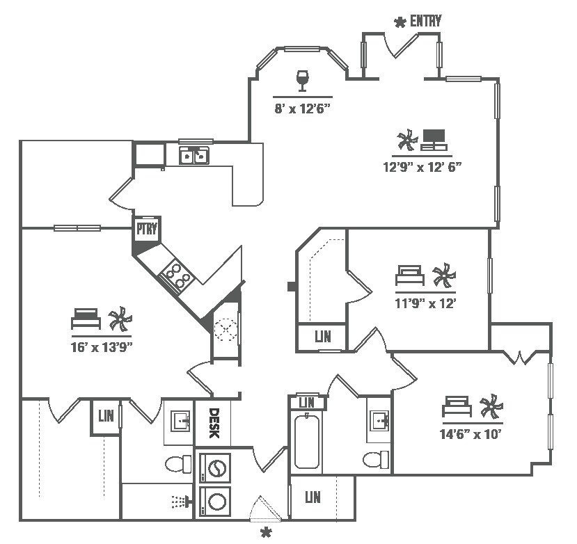 2 Beds, 2 Baths, 1282 sq ftAvailable NowModel Gallery