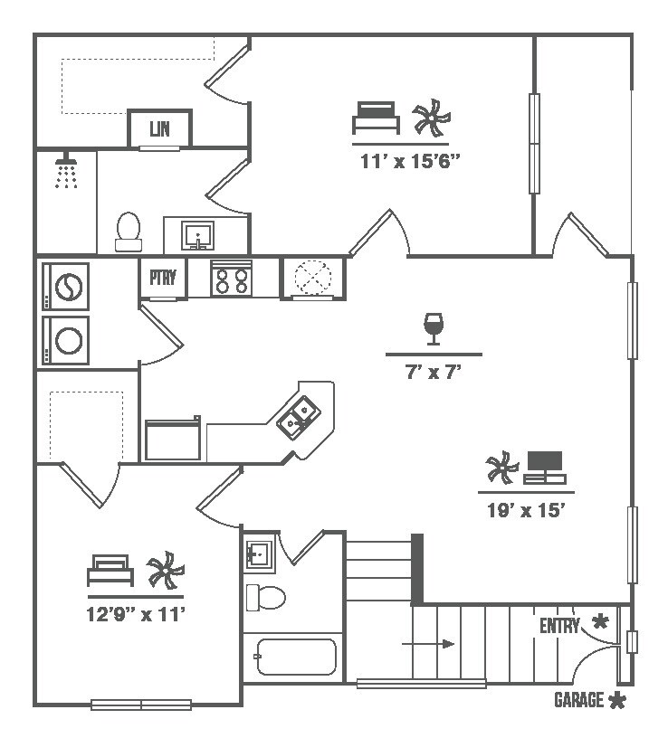 Apartment Model: A1 Lower w GarageCall For Rates1 Bedroom, 1 Bath, 695 sq ftUnavailable![]()