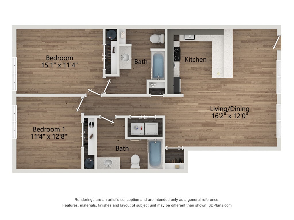 2 Beds, 2 Baths, 1050 sq ftModel Gallery
