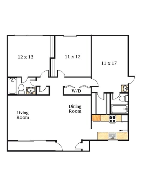 Sausalito 2x2 - Floorplan 2 3 Bedrooms