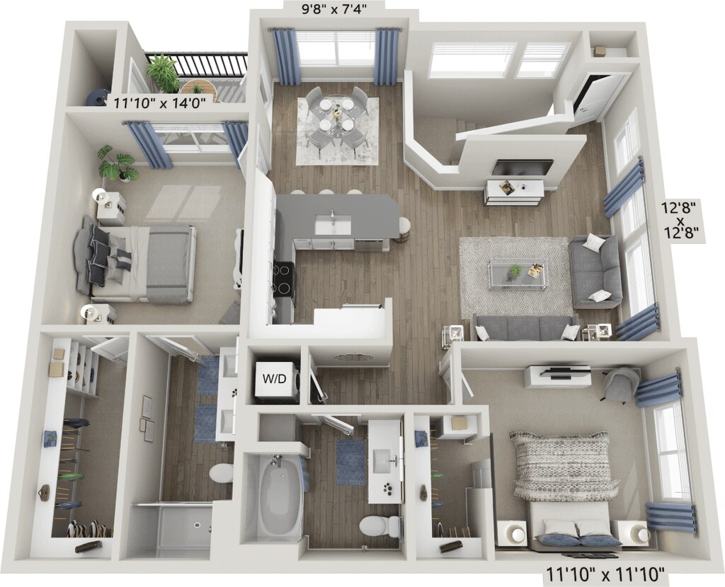 Apartment Model: A3 DawnFrom $1,6801 Bedroom, 1 Bath, 748 sq ftAvailable Now![]()