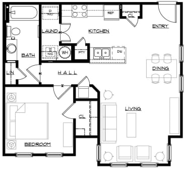 1 Bed, 1 bath - Floorplan 2 2 Bedrooms