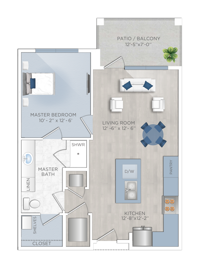 1 Bed, 1 Bath, 724 sq ftAvailable NowModel Gallery