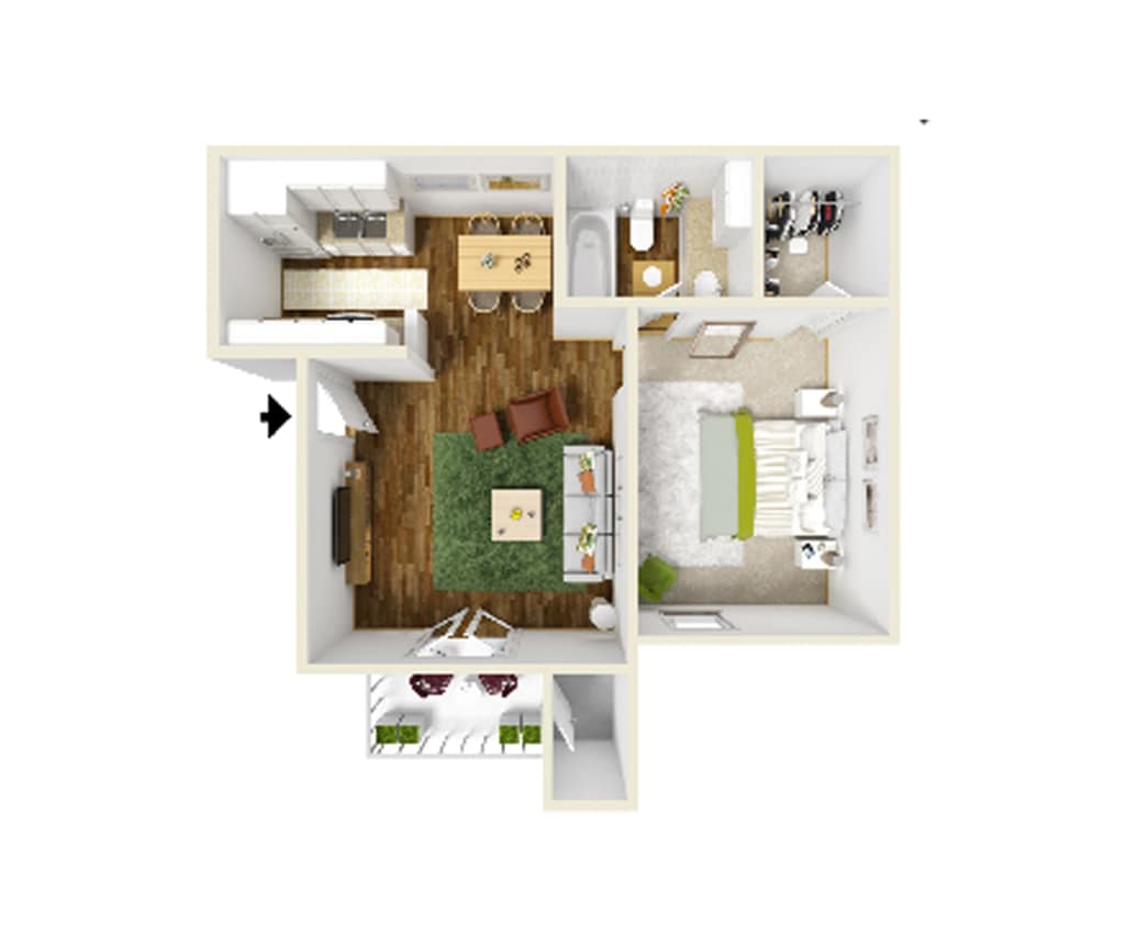 Apartment Model: A2From $8751 Bedroom, 1 Bath, 650 sq ftAvailable NowFloorplansPhotos![]()