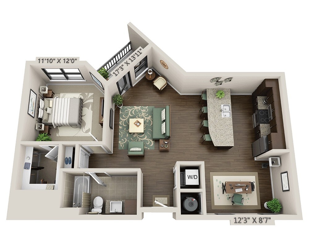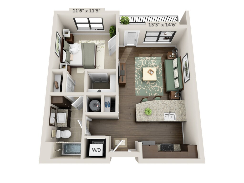 Studio, 1 Bath, 499 sq ftAvailable NowModel Gallery
