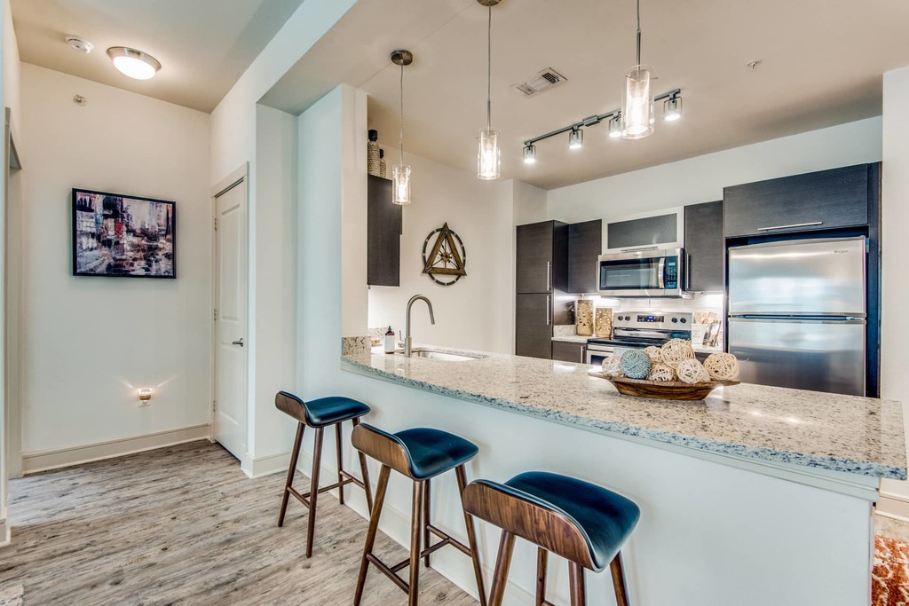 Savoye boasts remarkable amenities and elevated apartments for rent in Addison, TX. Your apartment features an open kitchen with granite countertops, spacious master suites, large closets, and thoughtful finishes. Select apartment homes offer hardwood flooring, panoramic views, and are designed to be LEED-certified. Take advantage of our on-site amenities including two resort-style pools, and a state-of-the-art fitness center. Located northwest of I-635 and the Dallas North Tollway, Savoye residents enjoy close proximity to Addison restaurants, shopping, and entertainment. Take advantage of immediate access to 12-acre Vitruvian Park. With the best of Addison and Dallas at your doorstep, visit Savoye today for a tour. We are currently offering self-guided tour appointments.