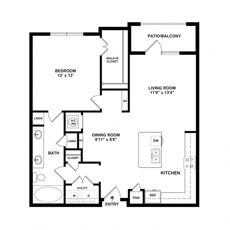 A3 - Floorplan 3 Apartment Unit: 5-125Apartment Model: A3$1,6131 Bedroom, 1 Bath, 845 sq ftAvailable NowFloorplan A2