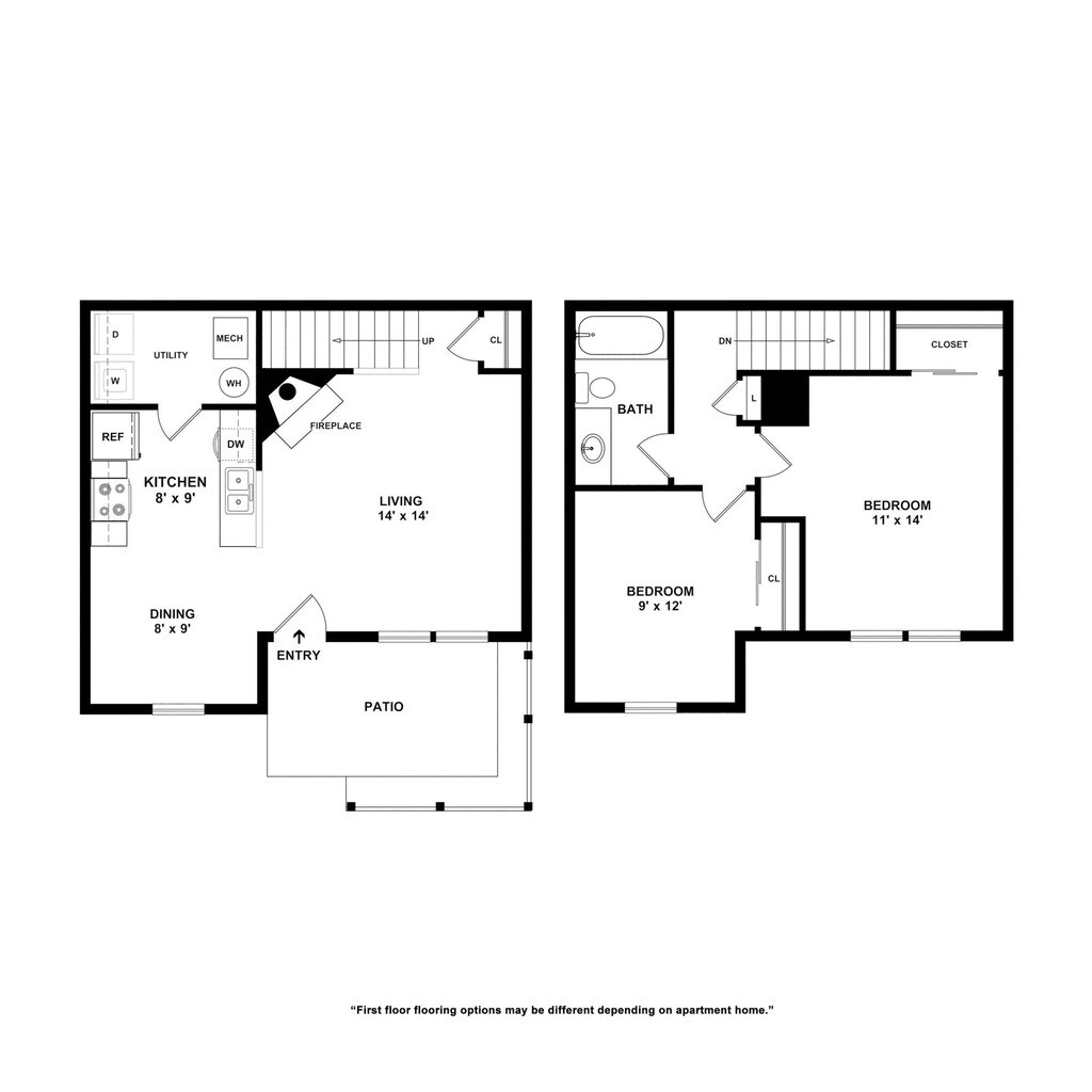 2 Beds, 1 Bath, 900 sq ftAvailable NowModel Gallery