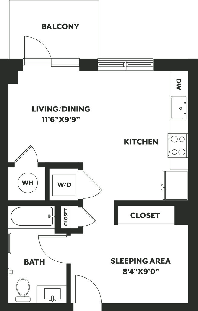 Studio, 1 Bath, 567 sq ftAvailable NowModel Gallery