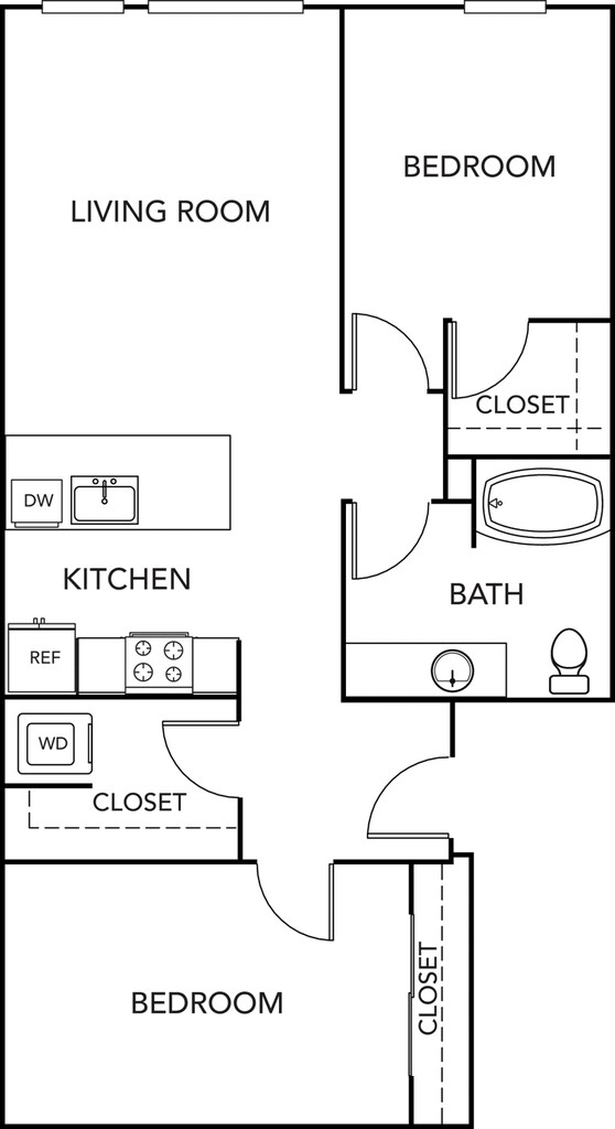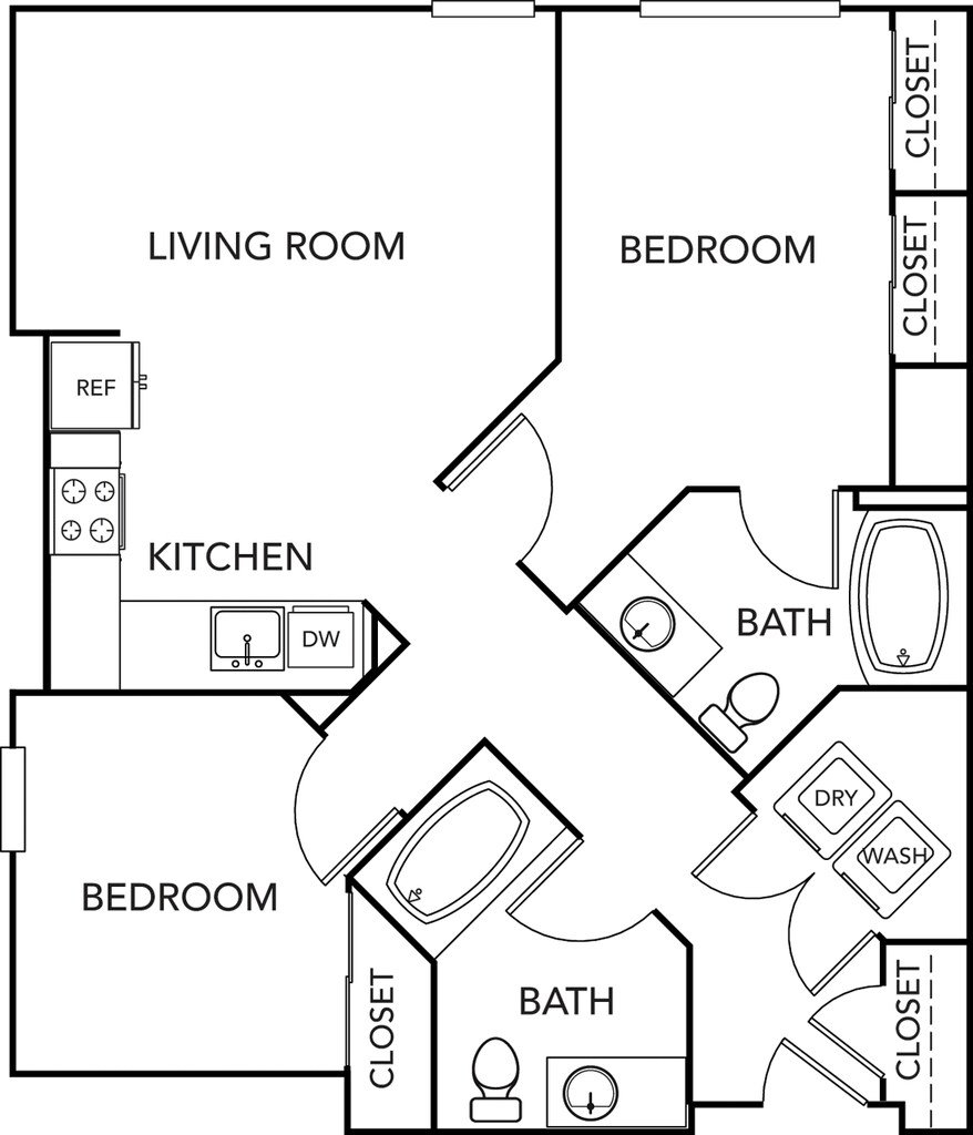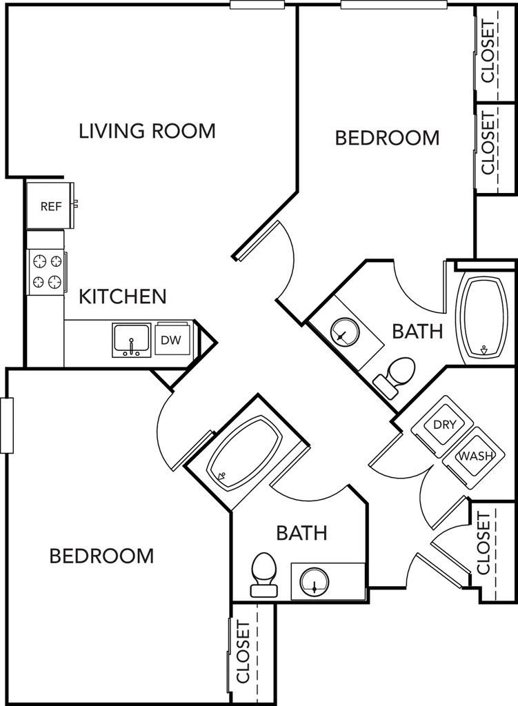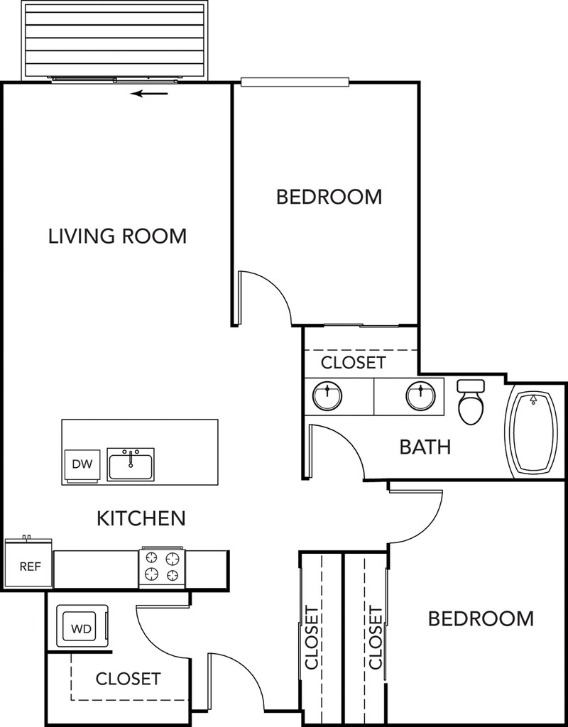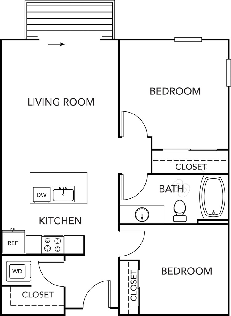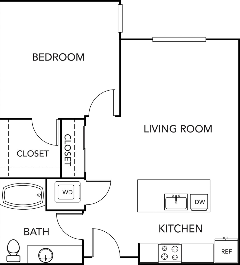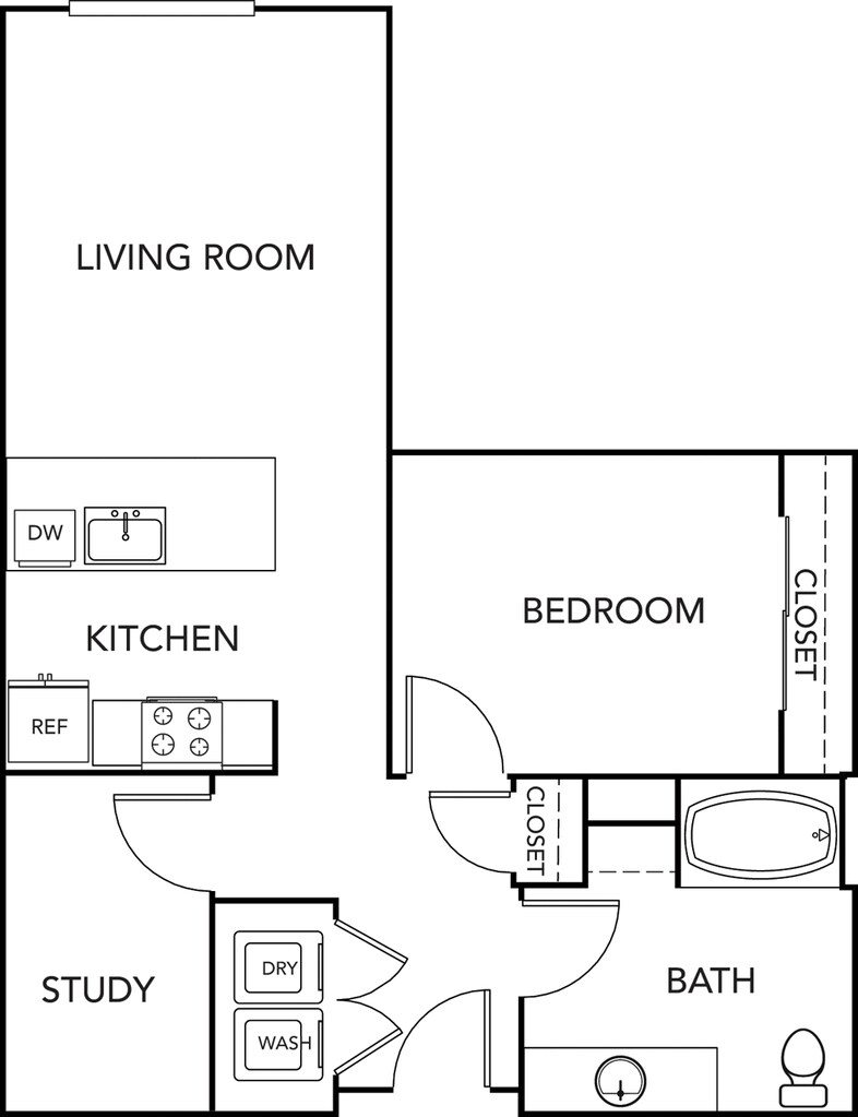 Apartment Model: Bryant A1From $1,7801 Bedroom, 1 Bath, 483-560 sq ftAvailable Now![]()