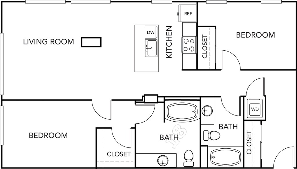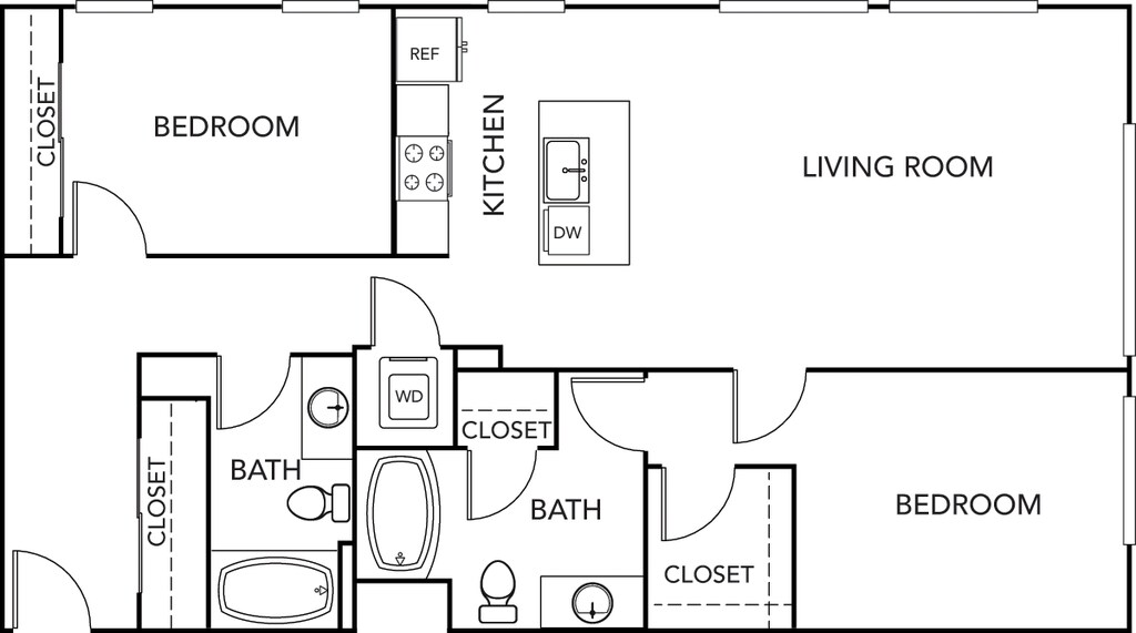 Apartment Model: Broadway B1From $1,7301 Bedroom, 1 Bath, 624-639 sq ftAvailable Now![]()