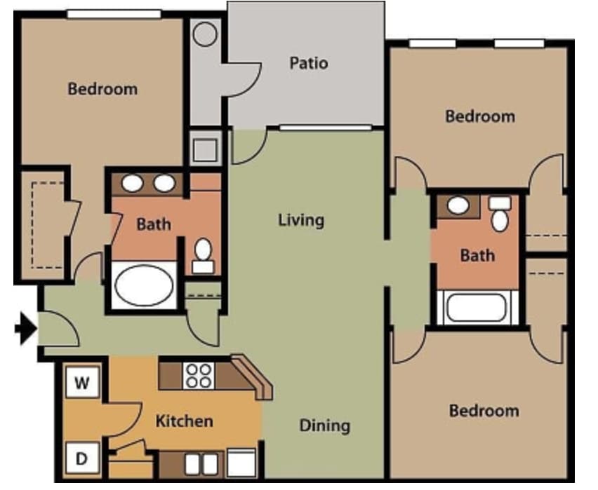 1 Bedroom to 3 Bedroom Apartments at Scarlett Place Apartments currently range from $1,095 to $1,628