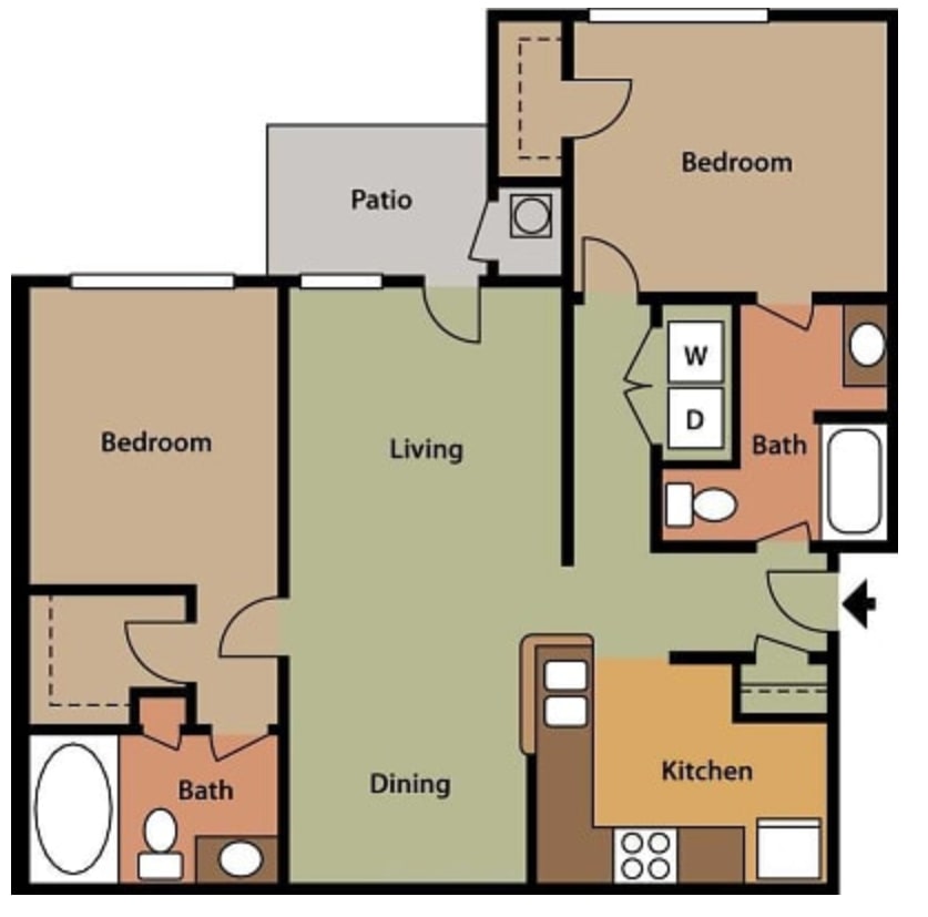 2 Beds, 1 Bath, 894 sq ftAvailable January 31, 2026Model Gallery