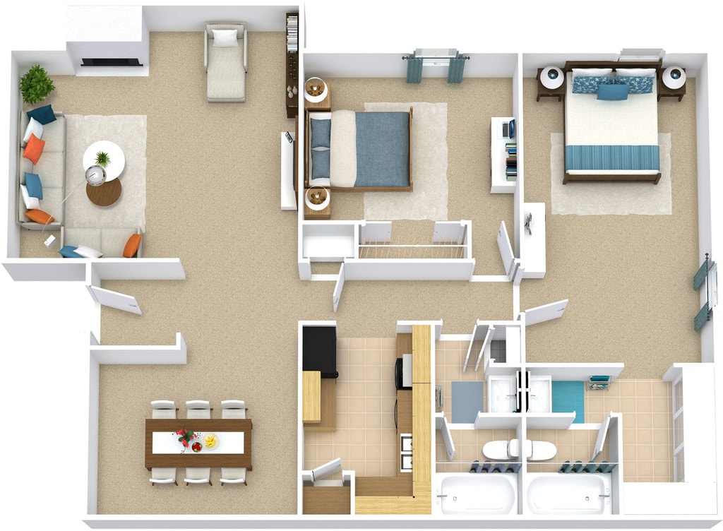 2 Beds, 2 Baths, 1020 sq ftAvailable NowModel Gallery