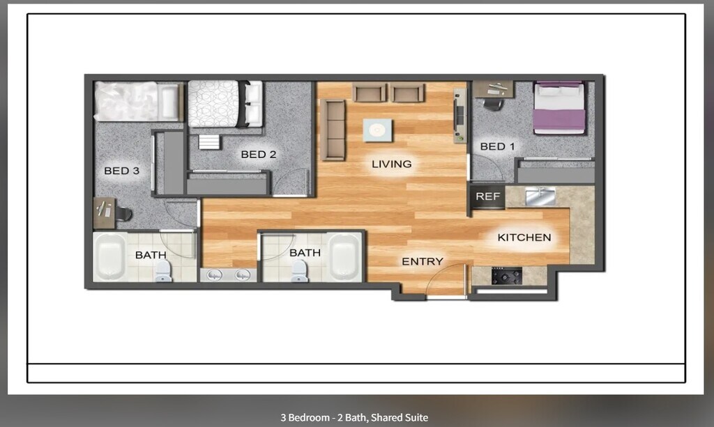 Apartment Model: 3 Bedroom$6603 Bedroom, 2 Bath, 900 sq ftAvailable Now![]()