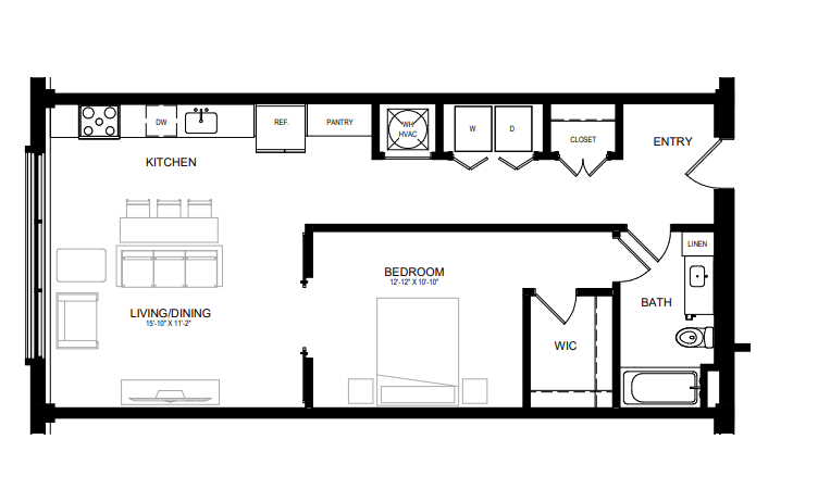 Wright - Floorplan 1 Apartment Unit: 107Apartment Model: Wright$1,1441 Bedroom, 1 Bath, 606 sq ftAvailable November 20, 2025Kennedy